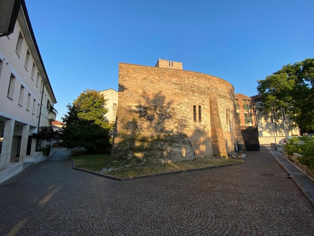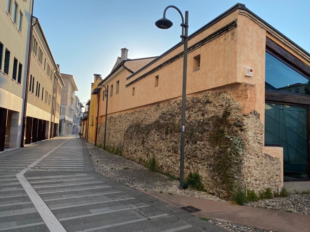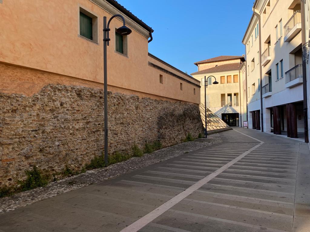Quando il territorio viveva un lungo periodo senza conflitti, a cavallo tra il ‘500 ed il ‘600, le mura hanno perso la loro funzione e quindi pian piano hanno lasciato spazio ad alte costruzioni o le hanno inglobate. Lo si può notare dopo Piazza Castello, verso la Piramide in Calle Opitergium.